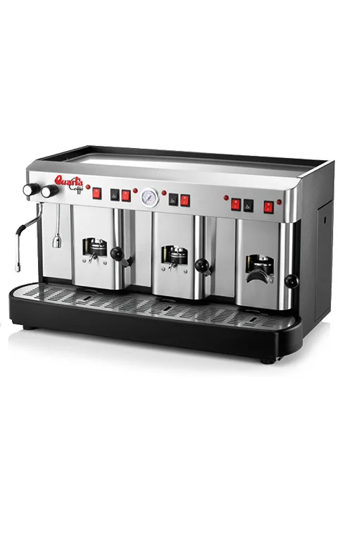 Macchina per caffè espresso a cialde in carta. Cecilia 3 gruppi è una macchina professionale a cialde adatta a bar e ristoranti. Permette di preparare contemporaneamente 3 caffè e allo stesso tempo è molto flessibile perché consente di spegnere i gruppi non necessari quando non servono. Come per gli altri modelli della serie, in ciascun gruppo è possibile montare il beccuccio singolo (per cialde da 7 g, 1 tazza) . Monta una caldaia da 3 litri e mezzo, il che costituisce un’eccezionale riduzione dei consumi energetici rispetto alle macchine in commercio. Anche la vaschetta di scarico è particolarmente capiente (3,5 litri). Cecilia 3 gruppi esiste in versione manuale o automatica (tasti: caffè lungo e caffè ristretto). Interruttori separati per un risparmio energetico del 70% rispetto ad una macchina tradizionale da bar. Semplicità di utilizzo